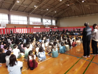 離任式 3月25日(水)、離任式が行われました。令和7年度は、11名の教職員の皆様とのお別れになり、全校の子どもたちと教職員で、感謝の気持ちを込めて離任式を行いました。離任される11名の先生方は、「おおがたしょう・みつばち」と題し、呼びかけを取り入れながら、メッセージを伝えてくださいました。今年度で大形小学校を離任される皆様、本当にありがとうございました。
