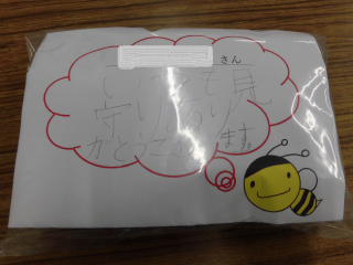 雪がちらちらと舞う季節になりました。毎朝、子供たちが安全に学校に登校できるよう、大形小学校応援団「見守りボランティア」の皆様にご協力いただいております。雨の日も、風の日も、暑い日も、寒い日も・・・ささやかですが、見守りグッズと子どもたちからの感謝の手紙をお渡ししました。ご自身の時間を割いて、子どもたちのためにご協力いただいておりますことに、心からありがとうございます。